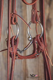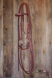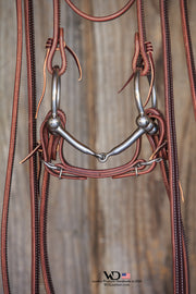 Bridle Set: Latigo Browband Headstall 3/4", Latigo Double & Stitched Reins, Latigo Curb, D Ring Smooth Snaffle Bit