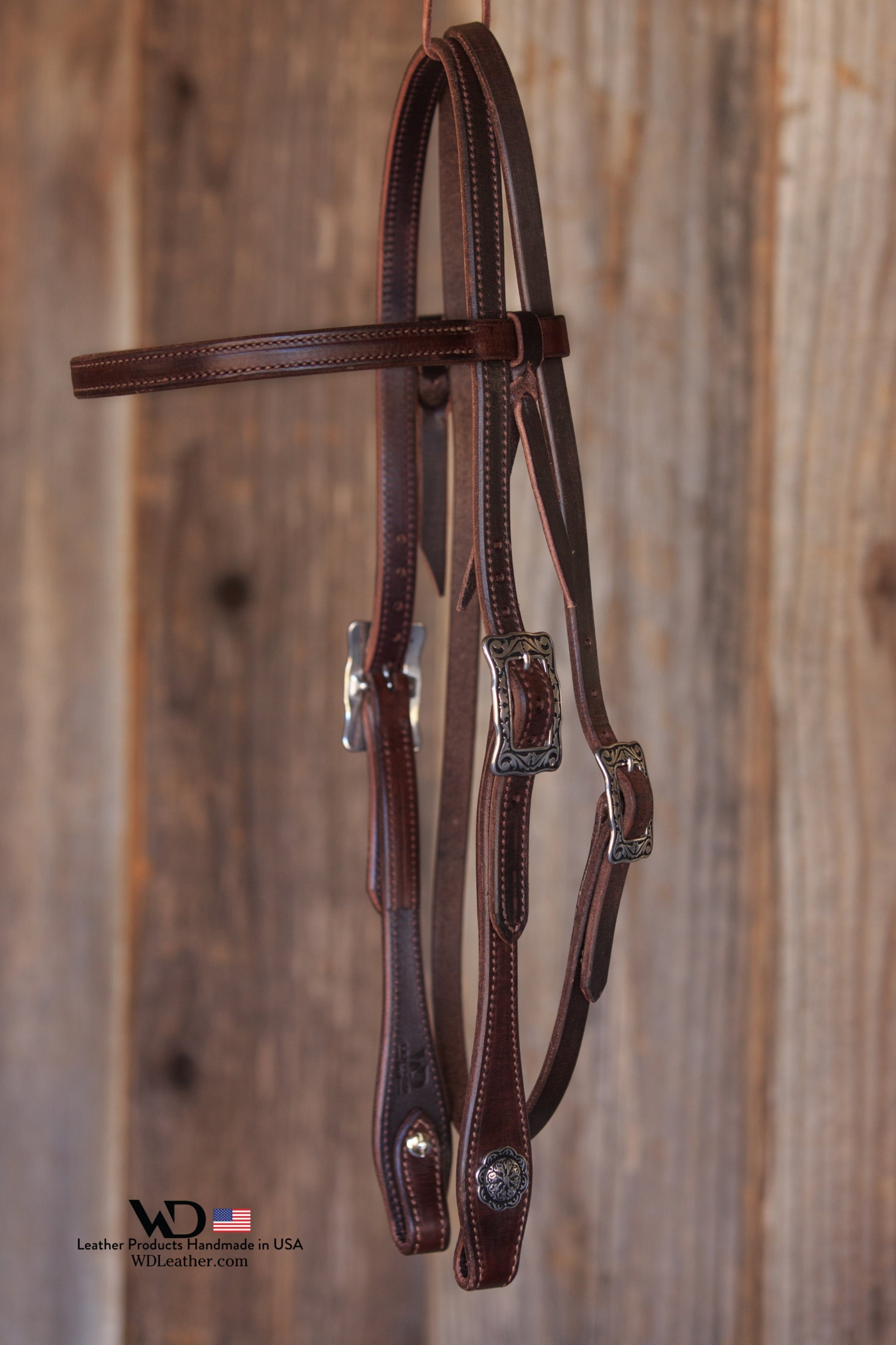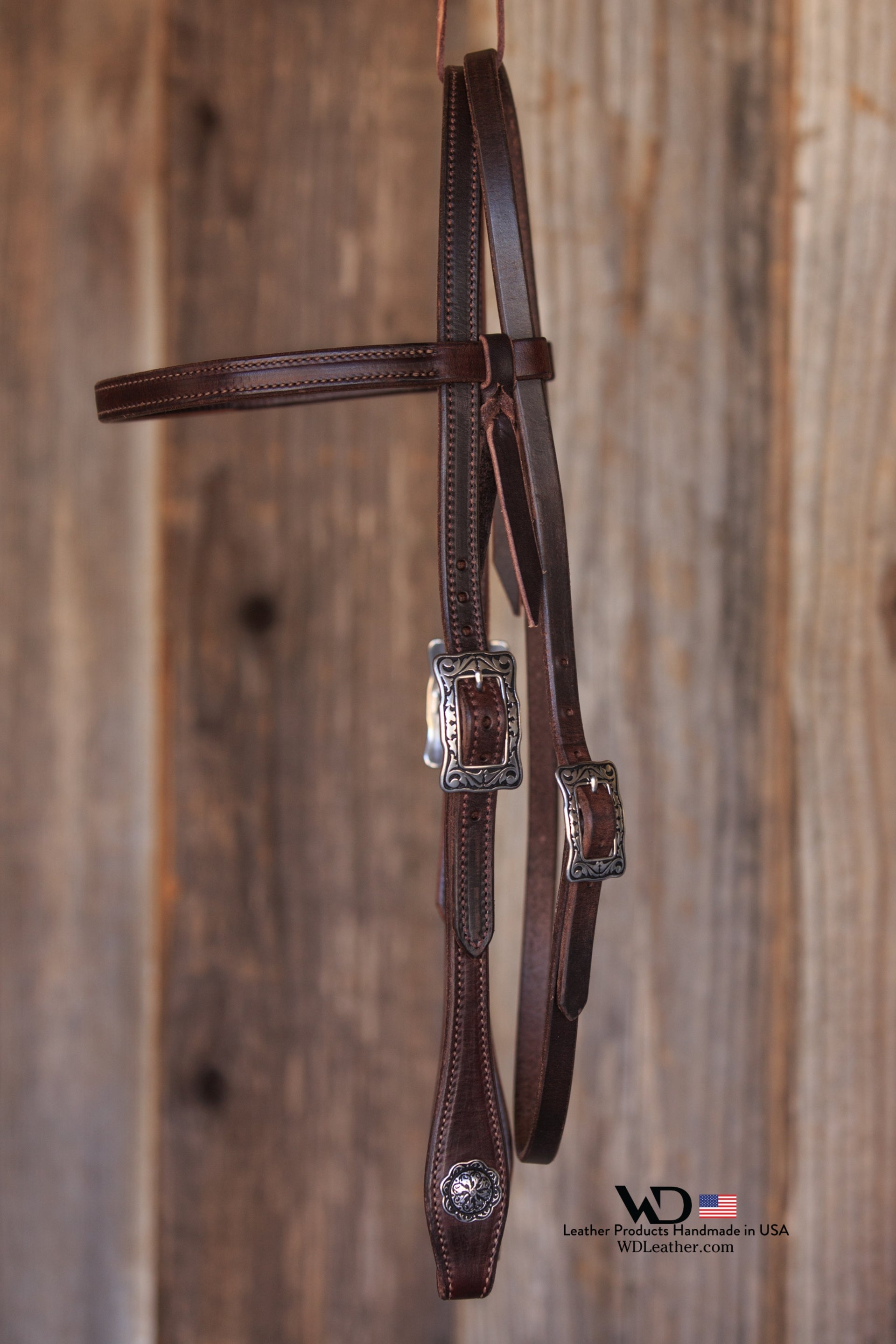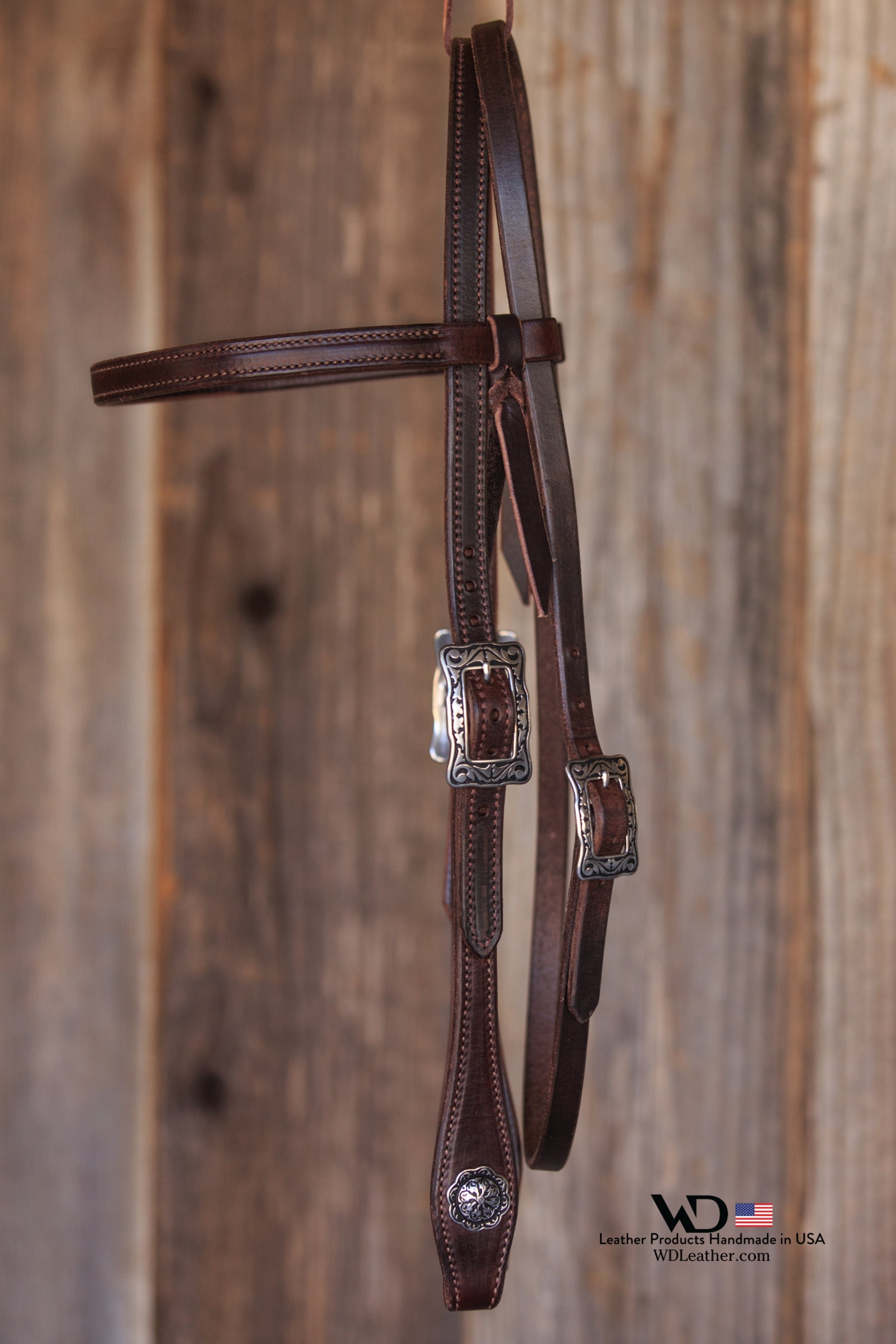 Dark Chocolate Harness Headstall with JW Watt Buckles and Conchos