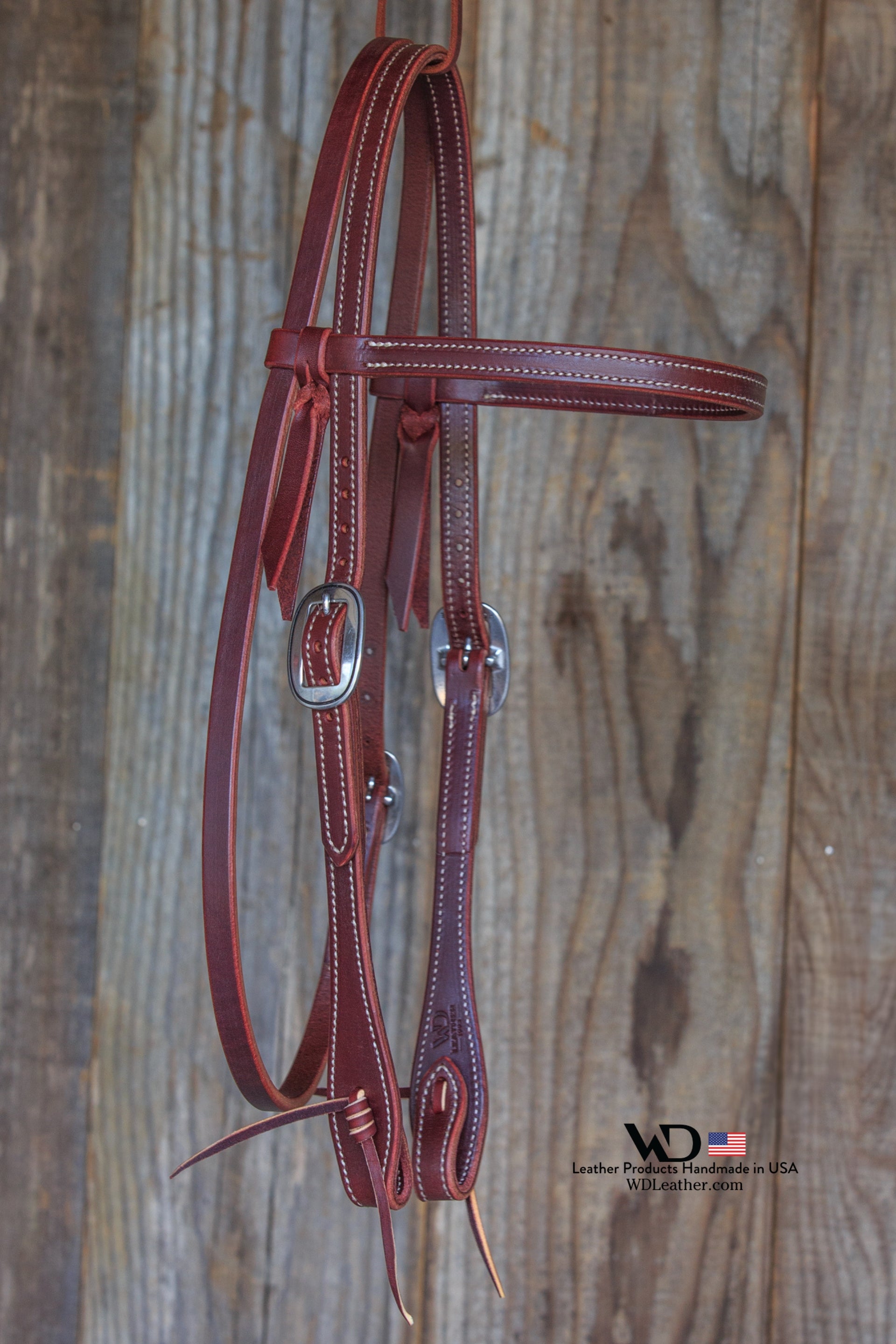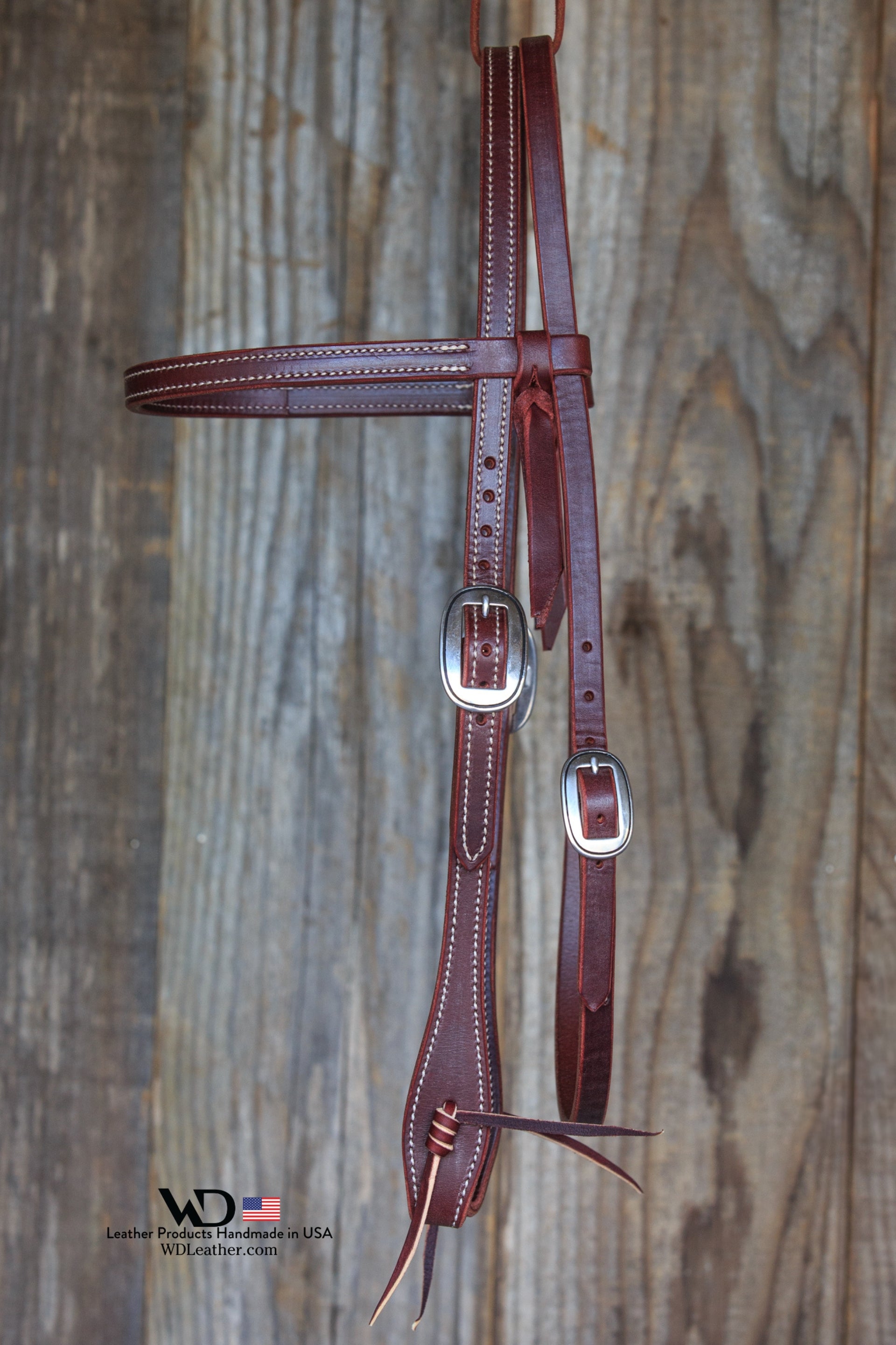 Discover the superior quality of our Double and Stitched Browband Latigo Headstall, meticulously handcrafted in the USA. This 5/8" headstall features two buckles, providing a secure and adjustable fit for your horse. Made from the finest latigo leather, our headstalls are soft and supple, ensuring a comfortable fit and feel for both horse and rider from day one.