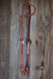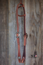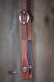 Premium One Ear Headstall with our custom Memphis Buckle & Concho Set - Harness Leather