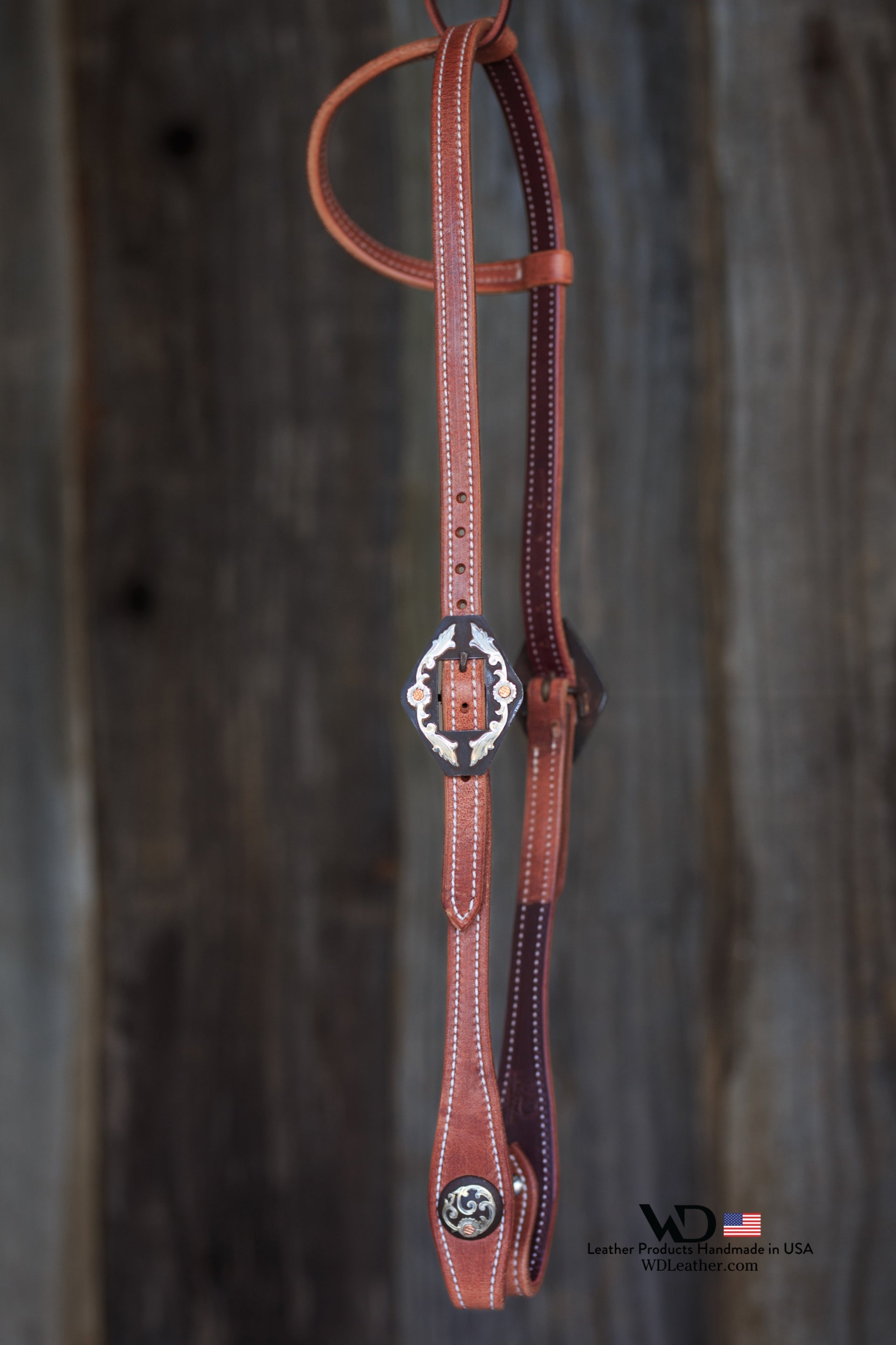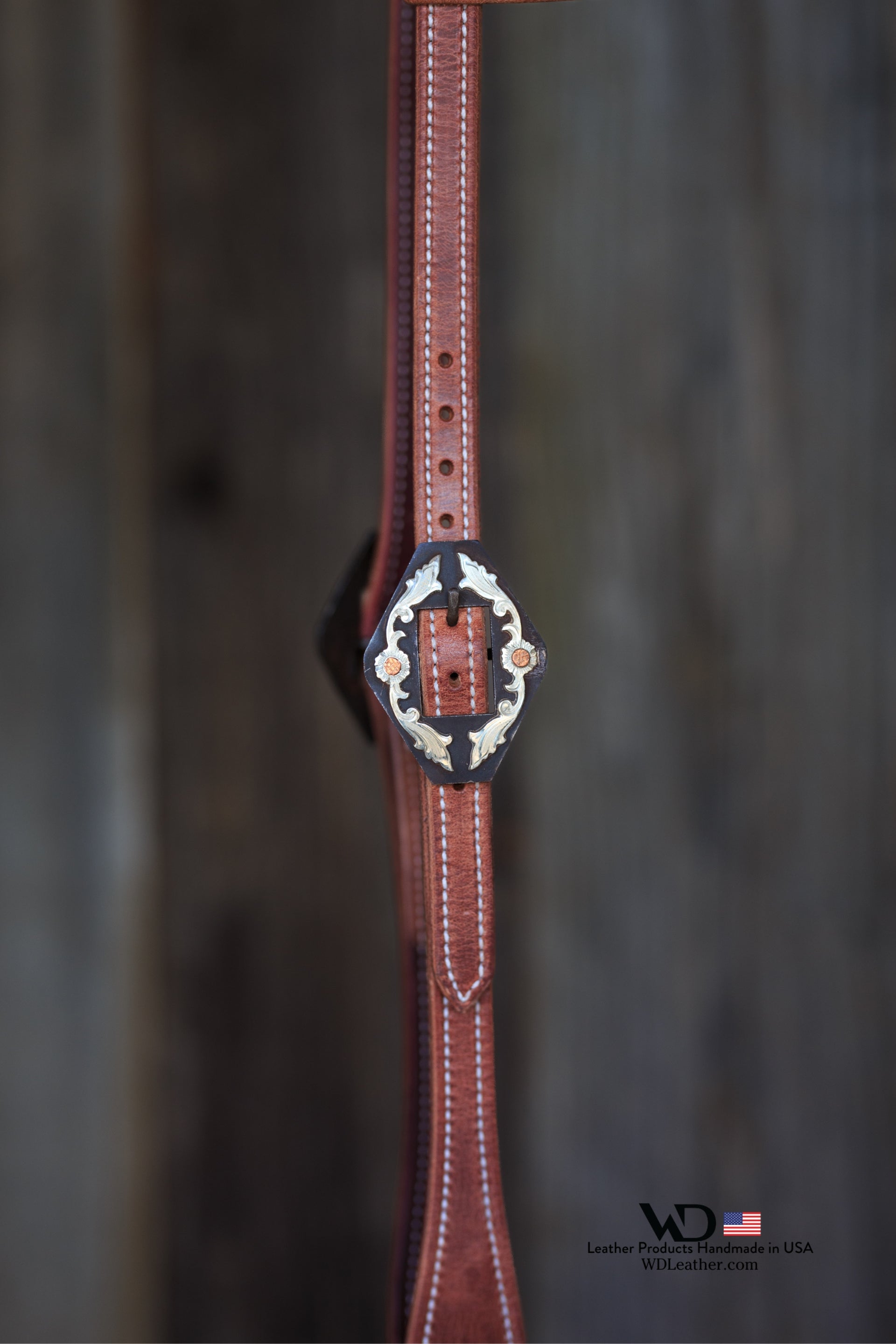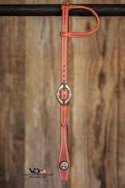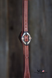 Premium One Ear Headstall with our custom Nashville Buckle & Concho Set - Harness Leather