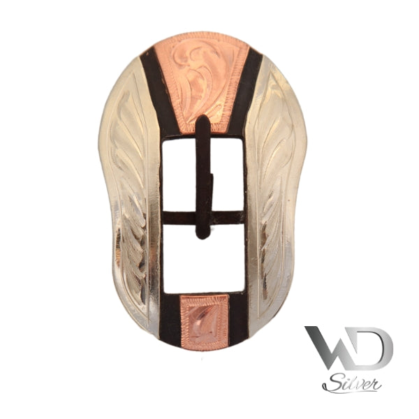 #3 Buckle Blue Gun Antiqued Iron with Nickel & Copper Engraving -